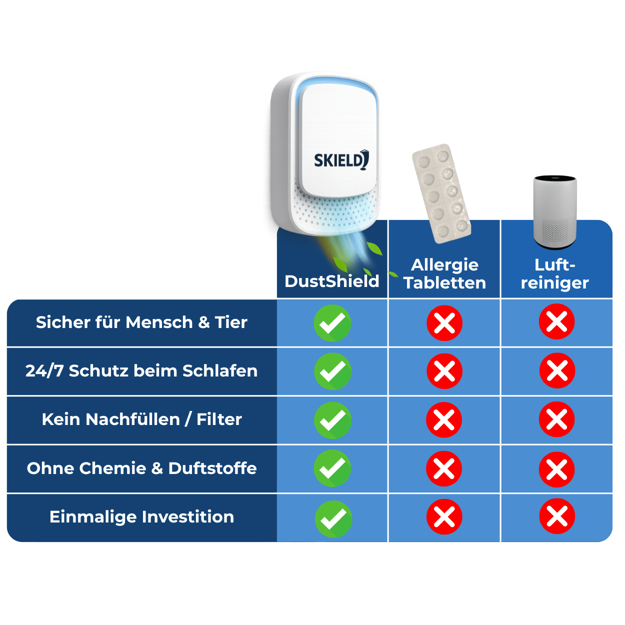 ✅ DustShield entfernt unsichtbare Reizstoffe – ganz ohne Filter, Spray oder Chemie.